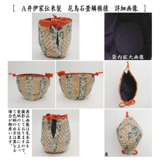 〇【茶器/茶道具 老松仕服(老松仕覆)】 老松茶器用 井伊家伝来裂 花鳥石畳鱗模様又は八稜花鳥紋 2種類より選択
