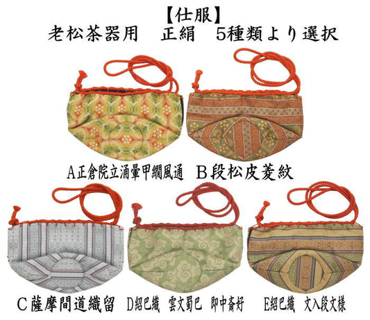 〇【茶器/茶道具 老松仕服(老松仕覆)】 老松茶器用 鳥襷純子又は菱繋ぎ紋 2種類より選択 (老松焼き用仕服・老松茶器用仕覆)