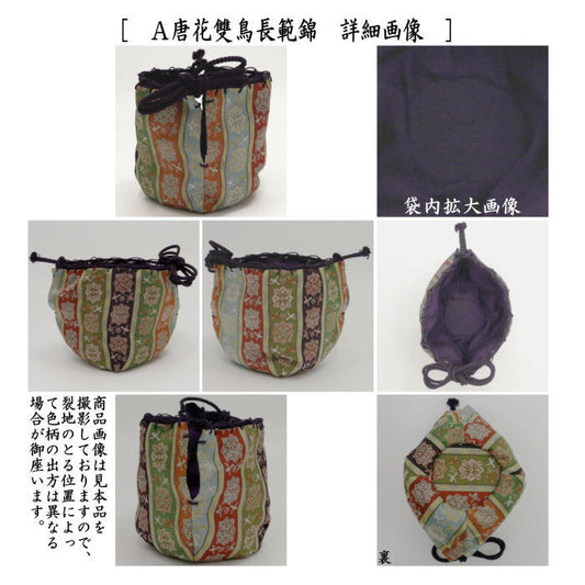 ◎【茶器/茶道具 老松仕服(老松仕覆)】 老松茶器用 正絹 唐花雙鳥長範錦又は天平八稜華文錦又は鹿文有栖川錦又はロワール飾花文又は花鳥梅花文錦 龍村美術織物裂使用