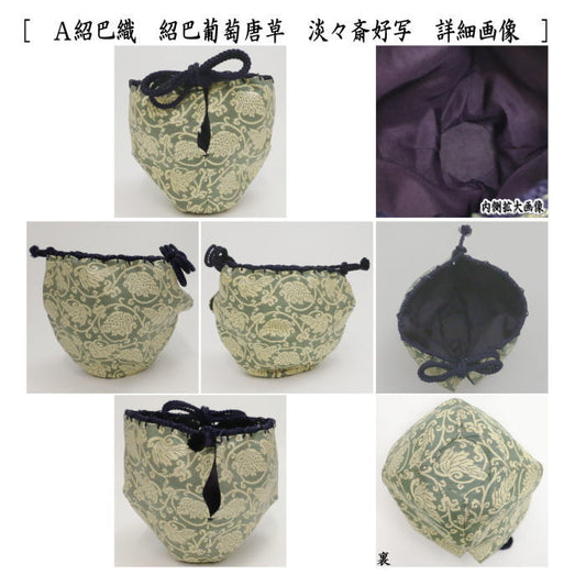 【茶器/茶道具 仕服(仕覆)】 天目茶碗仕服 正絹 紹巴織り 紹巴葡萄唐草 淡々斎好写し 2種類より選択