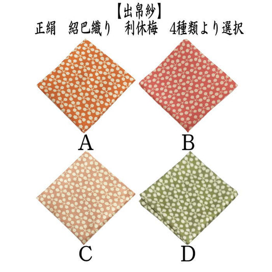 【茶器/茶道具 出帛紗】 唐物帛紗 正絹 紹巴織り 利休梅 4種類より選択 (出服紗・出袱紗・出ぶくさ・だしぶくさ)