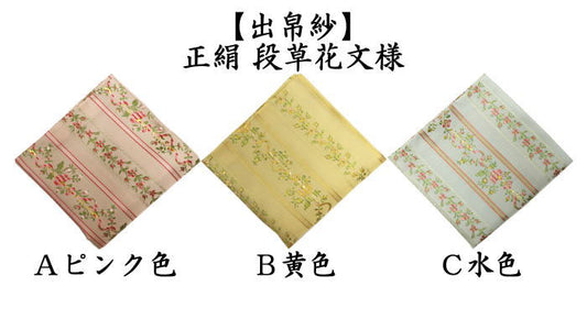 【茶器/茶道具 出帛紗】 正絹 段草花文様 ピンク色又は黄系又は水色 (出服紗・出袱紗・出ぶくさ・だしぶくさ)