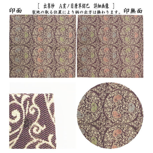 ◆【茶器/茶道具 出帛紗】 正絹 つなぎ蜀江又は海松浪裂又は笹づる (出服紗・出袱紗・出ぶくさ・だしぶくさ)