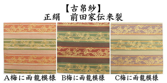 【茶器/茶道具 古帛紗】 正絹 前田家伝来裂 梅に雨龍模様 3色より選択 (古服紗・古袱紗・古ぶくさ・こぶくさ)
