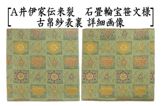 【茶器/茶道具 古帛紗】 正絹 井伊家伝来裂 石畳輪宝笹文様 2種類より選択 (古服紗・古袱紗・古ぶくさ・こぶくさ)