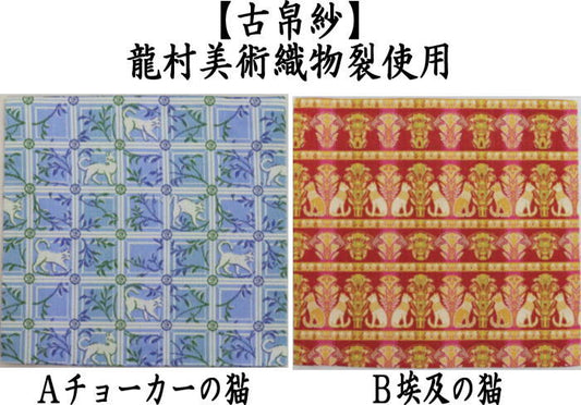 【茶器/茶道具 古帛紗】 正絹 チョーカーの猫又は埃及の猫(エジプトの猫) 龍村美術織物裂使用 (古服紗・古袱紗・古ぶくさ・こぶくさ)