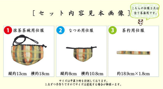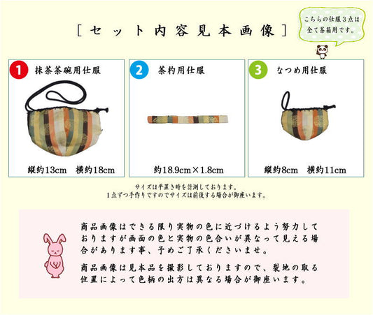 【茶器/茶道具 茶箱道具 仕服(仕覆)】 三つ組仕服 正絹 紹巴祥寿 淡々斎好写し