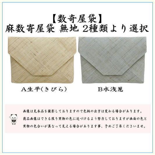 【茶器/茶道具 数奇屋袋(数寄屋袋)】 麻数寄屋袋 無地 生平(きびら)又は水浅葱 2種類より選択