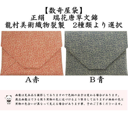 【茶器/茶道具 数奇屋袋(数寄屋袋)】 正絹 瑞花唐草文錦 赤又は青 龍村美術織物裂製 2種類より選択