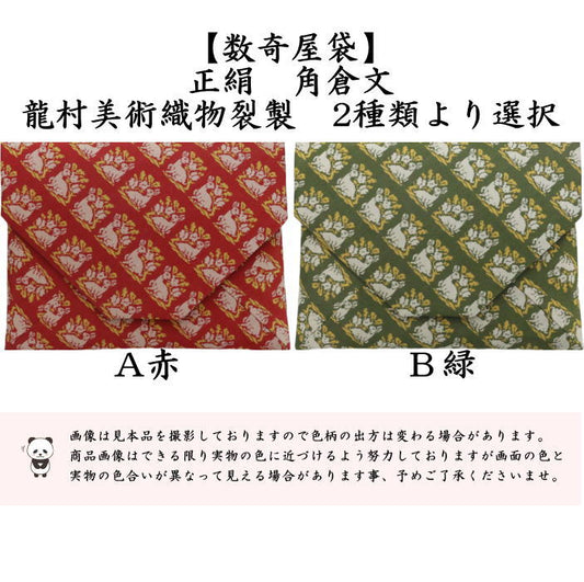 【茶器/茶道具 数奇屋袋(数寄屋袋)】 数寄屋袋 正絹 角倉文 赤又は緑 龍村美術織物裂製 2種類より選択
