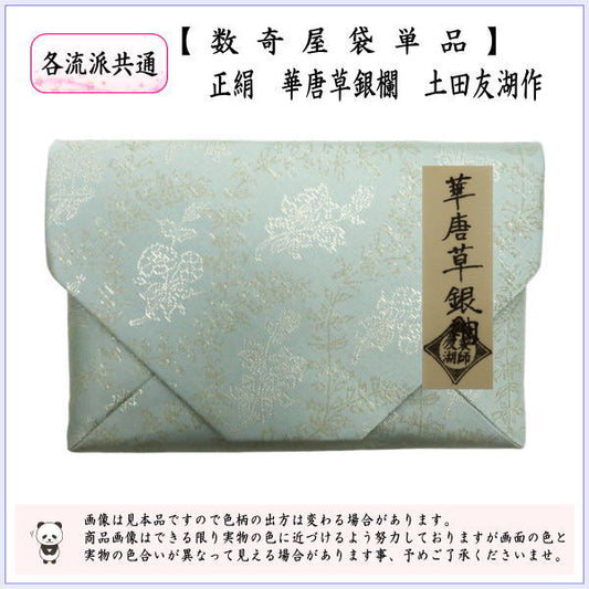【茶器/茶道具 数奇屋袋(数寄屋袋)】 正絹 華唐草銀欄 爪:木製 土田友湖作(千家十職 袋師)
