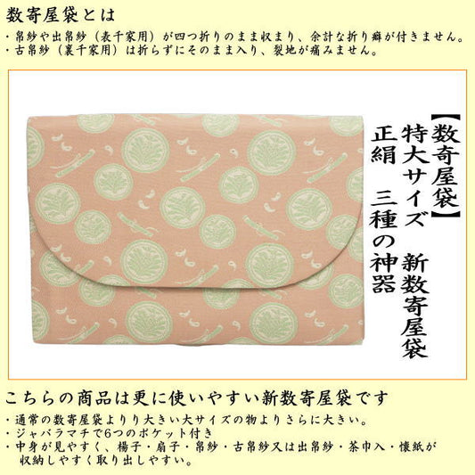 【茶器/茶道具 数奇屋袋(数寄屋袋)】 特大サイズ 新数寄屋袋 正絹 三種の神器 (セカンドバッグにもおすすめ)