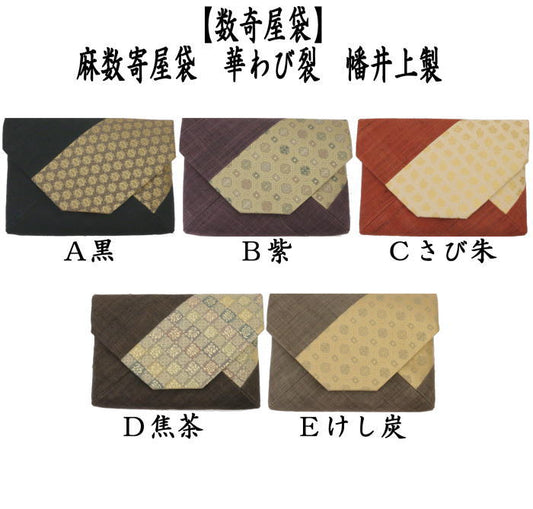 【茶器/茶道具 数奇屋袋(数寄屋袋)】 麻数寄屋袋 華わび裂 黒又は紫又はさび朱又は焦茶又はけし炭 幡井上製