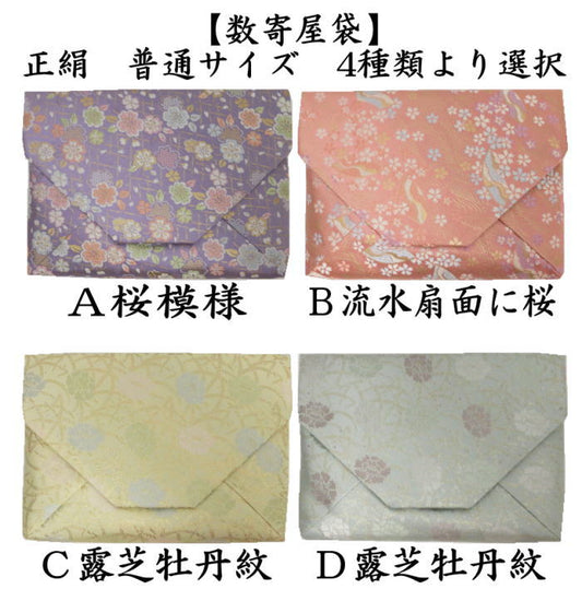 〇【茶器/茶道具 数奇屋袋(数寄屋袋)】 普通サイズ 正絹 桜模様又は流水扇面に桜又は露芝牡丹紋 4種類より選択