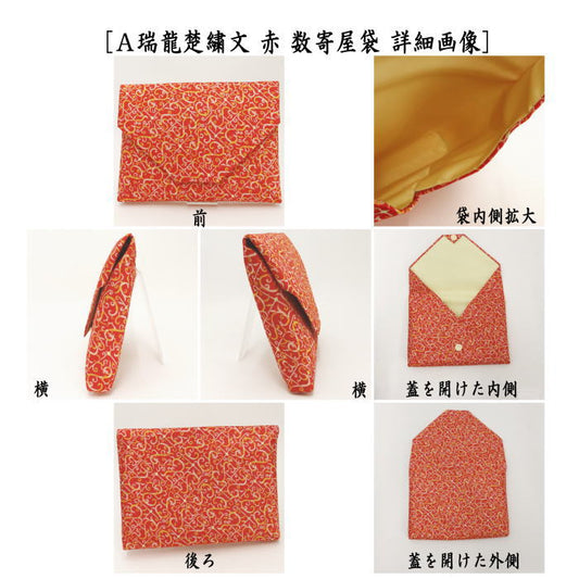 【茶器/茶道具 数奇屋袋(数寄屋袋) 干支「辰」】 干支数寄屋袋 正絹 瑞龍楚?文 赤又は青又は更紗雲龍文 龍村美術織物裂使用 (干支辰 御題和)