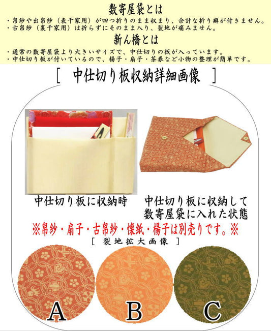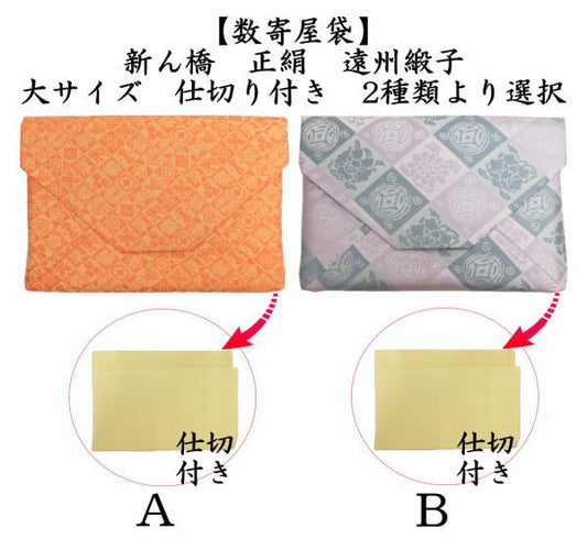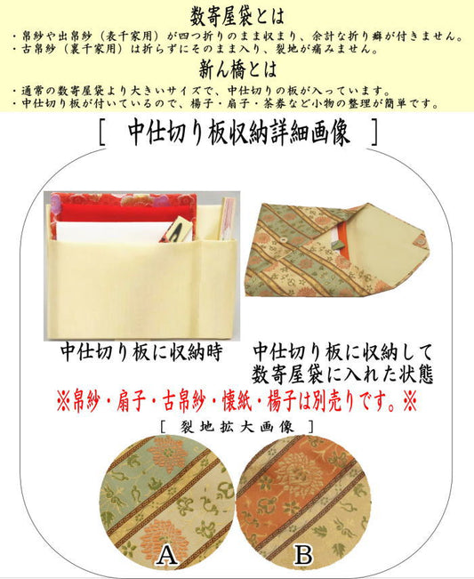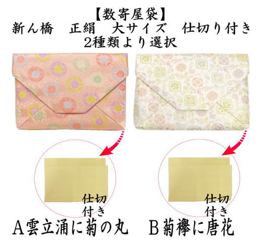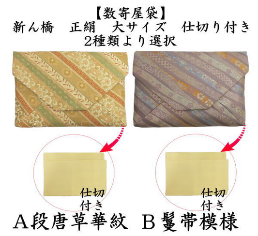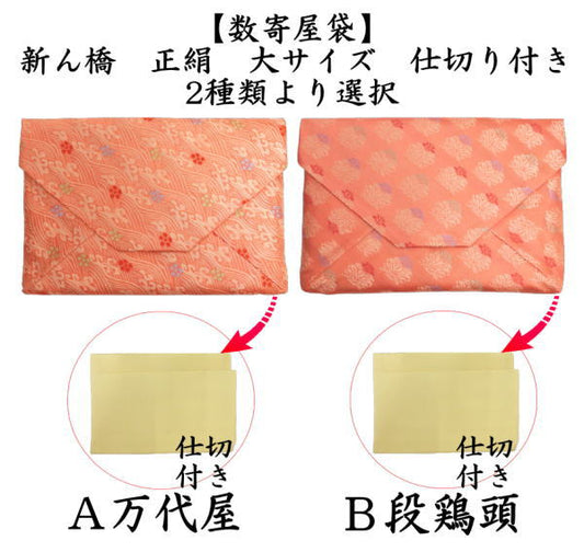 【茶器/茶道具 数奇屋袋(数寄屋袋)】 大サイズ 仕切り付き 新ん橋(新橋) 正絹 万代屋又は段鶏頭 2種類より選択