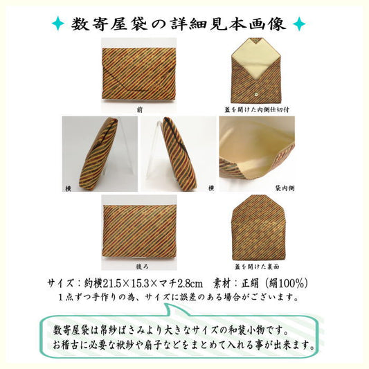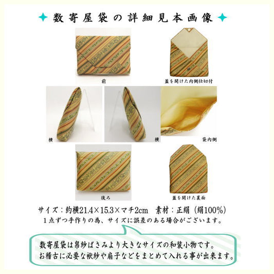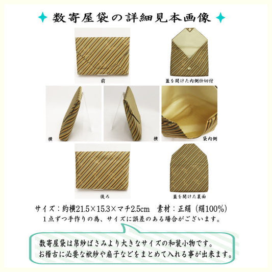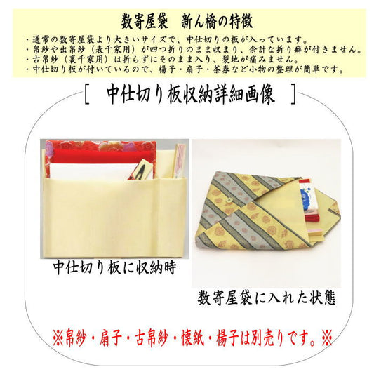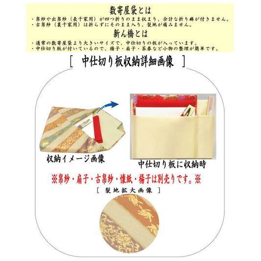 【茶器/茶道具 数奇屋袋(数寄屋袋)】 大 新ん橋(新橋) 正絹 縞草花金モール 仕切り付