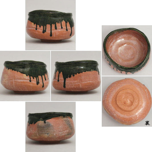 【茶器/茶道具 抹茶茶碗】 赤織部釉 沓形(沓型 くつ形 くつ型) 佐々木虚室作(帰来窯)