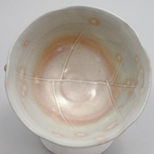 【茶器/茶道具 抹茶茶碗】 白萩焼き 粉引 井戸型 服部陶炎作(天龍窯)