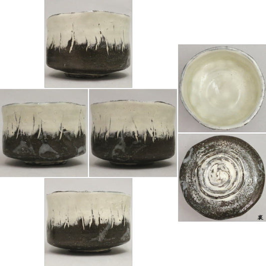 【茶器/茶道具 抹茶茶碗】 萩焼き 炭化古萩 粉引 Mt.Fuji 不二山(富士山) 片身替 清水啓功作(煌雪窯) 古萩復活