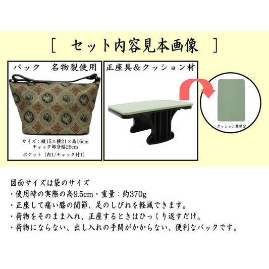 〇【茶器/茶道具 バック式正座椅子(座イス・閑座)】 座れるバッグ 名物裂使用 4種類より選択