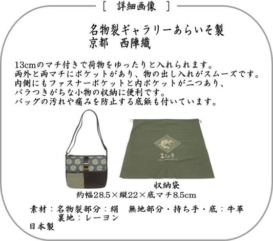 【日用品/雑貨 ハンドバッグ(ハンドバック)】 牛革バッグ(牛革バック) 雪月花 荒磯製(あらいそ) 収納用袋付 (名物裂ギャラリーあらいそ有限会社)