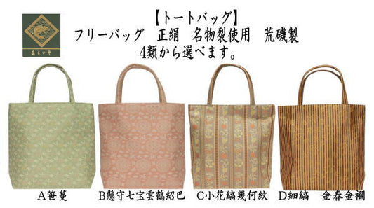 【和装バッグ(和装バック) トートバッグ(トートバック)】 フリーバッグ(フリーバック) 正絹 名物裂使用 荒磯製(あらいそ) 4類から選べます。