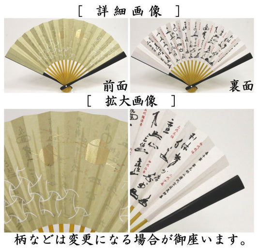 【茶器/茶道具 扇子】 6.5寸 表千家用 中骨黄染め つぼつぼに独楽つなぎ 裏面:表千家歴代花押集 而妙斎宗匠好写し (壷々・壺々・壺壺・壷壷・つぼつぼ)