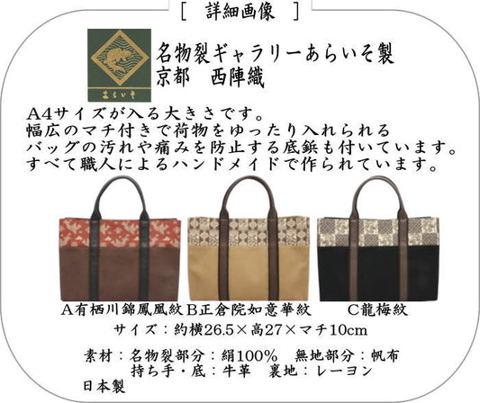 【日用品/雑貨 手提バッグ(手提バック)/トートバッグ(トートバック)】 紬バッグA4