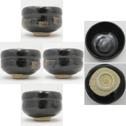【茶器/茶道具 抹茶茶碗】 上 黒楽茶碗又は赤楽茶碗 胴締め 角印 佐々木松楽作