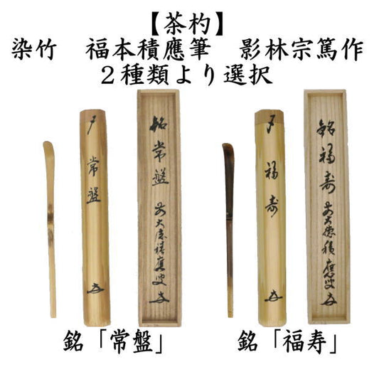 【茶器/茶道具 銘付茶杓】 染竹 銘「常盤」又は「福寿」 福本積應筆 影林宗篤作