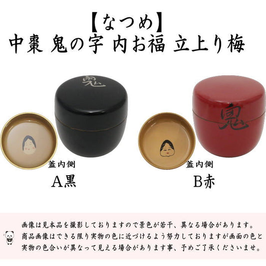 【茶器/茶道具 なつめ(お薄器) 節分】 中棗 鬼の字 内お福 立上り梅 黒又は赤 2種より選択 木質 木埼作