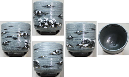【茶器/茶道具 抹茶茶碗】 筒茶碗 近江八景(雪山水) 中村良二作