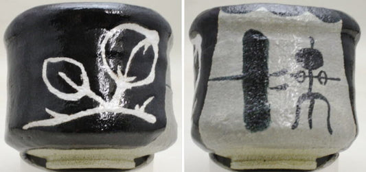 〇【茶器/茶道具 抹茶茶碗 節分】 お福茶碗 中村与平作又は百福茶碗 八木海峰作