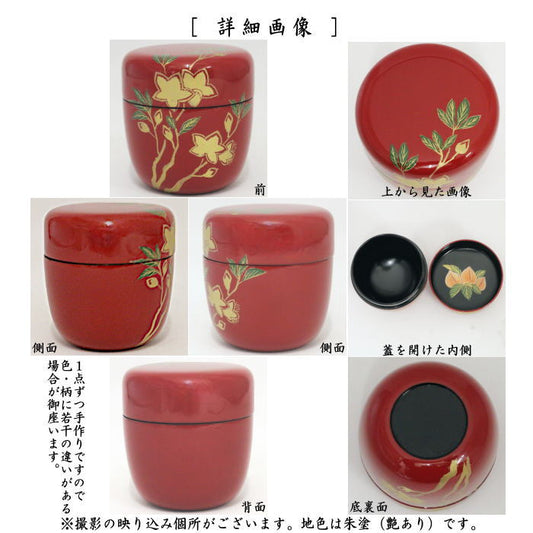 【茶器/茶道具 なつめ(お薄器) ひな祭り】 中棗 朱 桃花 内桃の実 中村湖彩作
