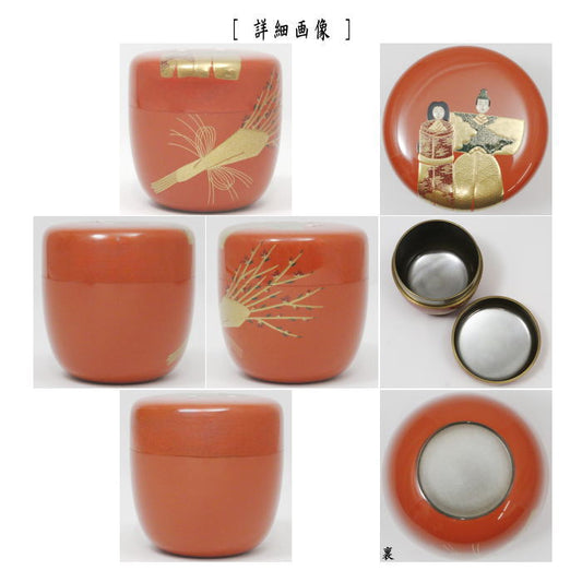 【茶器/茶道具 なつめ(お薄器) ひな祭り】 中棗 朱 立雛蒔絵 縁金 中村湖彩作 木質製