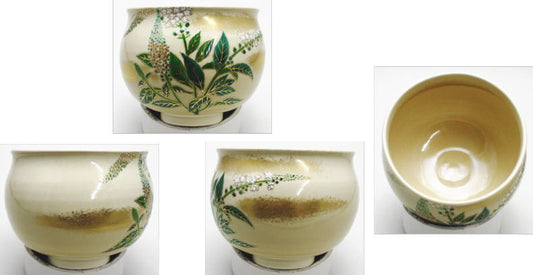 【茶器/茶道具 抹茶茶碗】 仁清写し 掛分 ハイビスカス 窪田常之作(壱休窯)