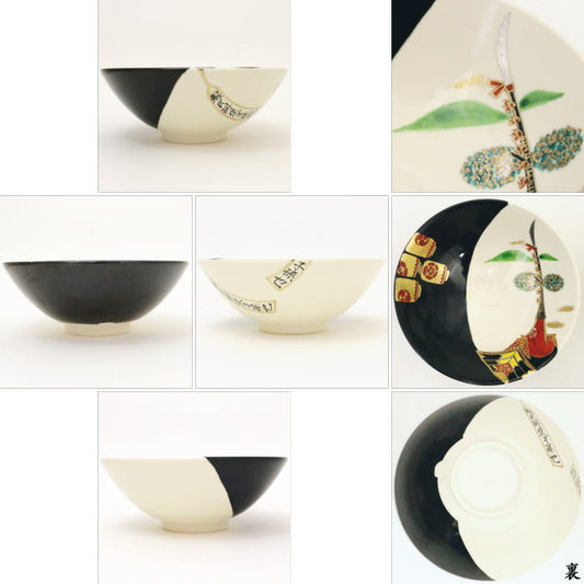 【茶器/茶道具 抹茶茶碗】 七夕 色絵茶碗 梶の葉に糸巻 大石督幸作