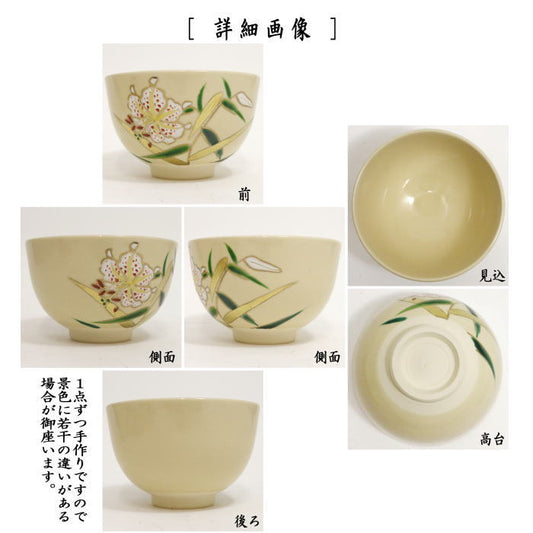 〇【茶器/茶道具 抹茶茶碗】 色絵茶碗 山百合 加藤郷山作