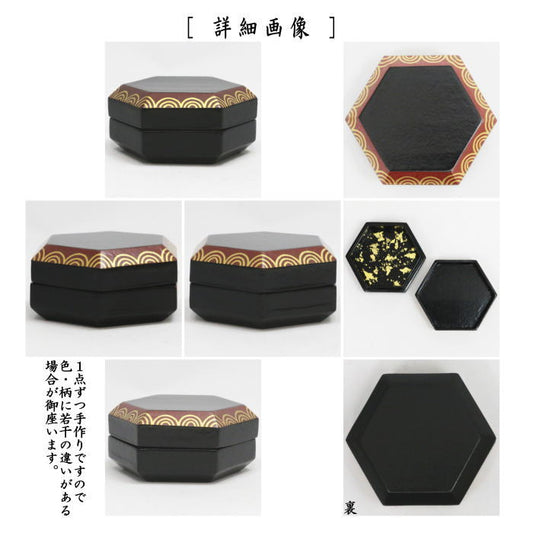 【茶器/茶道具 香合】 黒一閑 六角形 青海波 中谷秀斎作 (六角型・中谷秀斉作)
