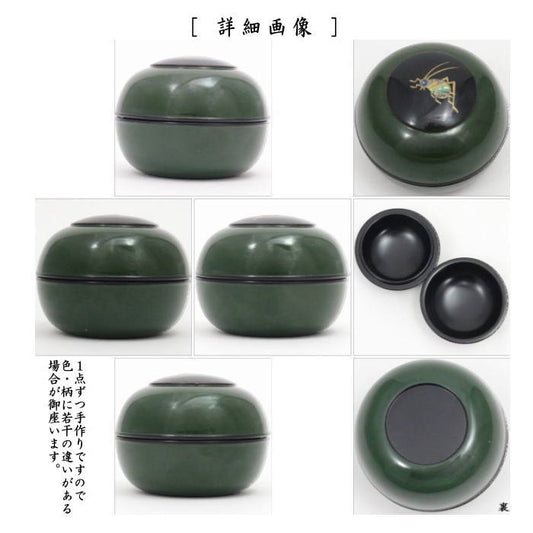 【茶器/茶道具 香合】 青漆 虫蒔絵 辻石斎作 (青貝蒔絵・辻石斉作)