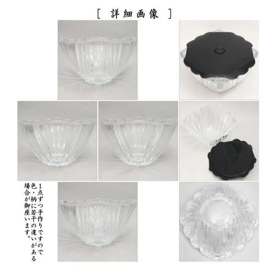 【茶器/茶道具 水指(水差し)】 ガラス(硝子) 平水指 クリスタルカットガラス 塗蓋:輪島蝋色仕上