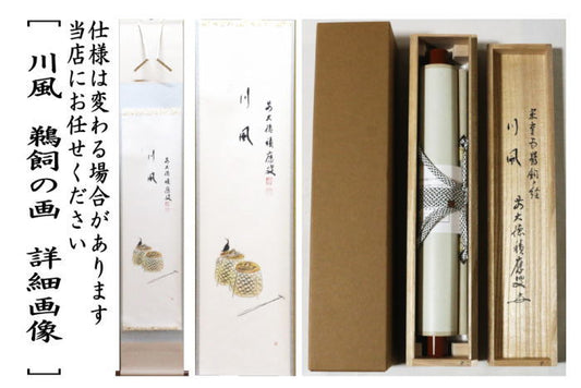 【茶器/茶道具 掛軸(掛け軸)】 一行画賛 川風 福本積應筆 鵜飼の画 上村米重画