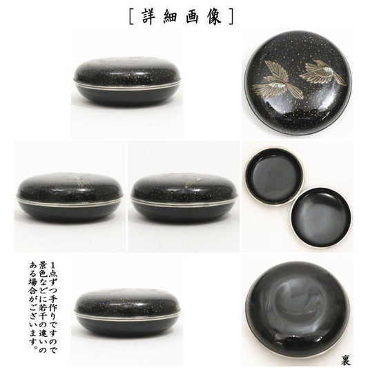 【茶器/茶道具 香合 七夕】 丸香合 鵲(かささぎ) 銀縁 内黒塗り 箕輪一星作