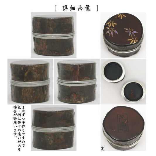 【茶器/茶道具 香合】 面取丸香合 片輪波 青貝入り 縁錫 新井司峰作