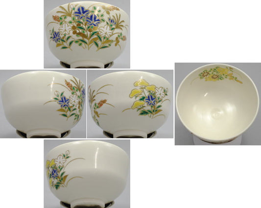 【茶器/茶道具 抹茶茶碗】 色絵茶碗 菊花 杉田祥平作(清閑寺窯)