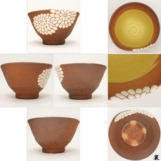 【茶器/茶道具 抹茶茶碗】 菊茶碗 前に面あり 通次阿山作