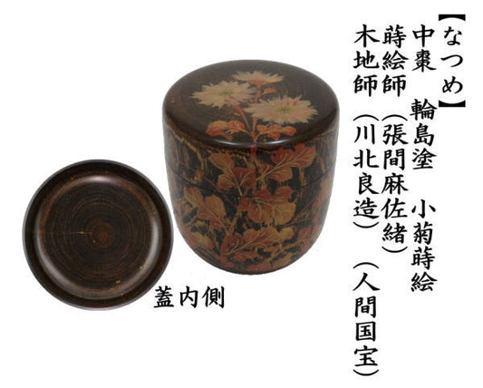 【茶器/茶道具 なつめ(お薄器)】 中棗 輪島塗り 小菊蒔絵 蒔絵師:張間麻佐緒 木地師:川北良造