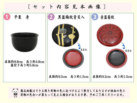 【茶器/茶道具 なつめ(お薄器)】 平棗 春秋棗 替蓋付 黒蓋梅紋青貝入&赤蓋菊紋 即中斎好写し 小林雄峰作
