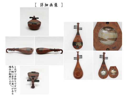 【茶器/茶道具 香合】 摺漆 琵琶 秋草蒔絵 内銀地に秋草 角出俊平作 花梨材